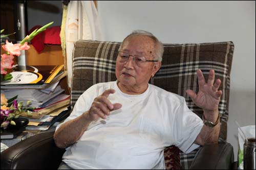 张彦老学长讲述他的抗战经历。解红岩 摄