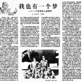 《我也有一个梦——一个百岁老人的呼吁》刊发于2014年5月16日光明日报大观版。