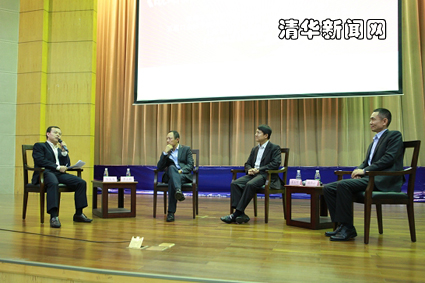 深圳证交所副总经理陆肖马,北极光创投董事总经理李立新,上海富国基金总经理窦玉明,五道口深圳校友会会长、国康网董事长杨华山4位学长从不同的角度就首场论坛的主题“战略新兴产业发展与中国经济转型”展开讨论。窦玉明认为,如果政府能够放开资源和管制,则新兴产业机会更多,中国经济转型的关键在于政府职能转变。杨华山从自己从事的医疗健康行业谈了体会,他认为,服务业是中国未来经济转型的重点,政府也会逐步出台相关的扶持政策,健康产业在中国有很大的发展空间,但对企业而言,更重要的是把服务和产品做得更好,以服务价值争取市场。陆肖马从宏观角度阐述并解读了国家的战略新兴产业政策,他认为,产业界不仅要适应政府的政策,还要把握市场的规律,才能抓住战略新兴产业的机会。李立新认为,企业家应该计算自己的资本效率、产能规模和成本,不能单靠政府指引,成本价格适应市场才有竞争力。几位学长就中国经济未来的推动因素发表各自的看法。