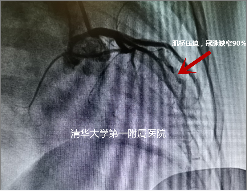 李小梅沉着冷静,通过仔细分析恩宝室速发作前后的心电图,发现他室速发作前先表现为心跳加速,同时心电图提示伴有心肌缺血,李小梅凭借丰富的临床经验,怀疑患儿存在冠脉肌桥。随后,心内科专家逯春鹏为患儿进行了冠状动脉造影检查。果然,结果显示为冠状动脉前降支近段肌桥,收缩期血管压缩90%。又一项诊断明确,离揪出患儿晕厥的“元凶”又近了一步!