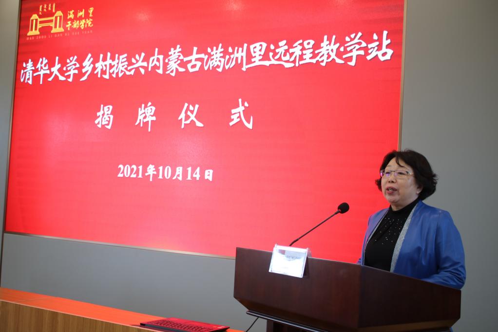 张文雪对乡村振兴远程教学站启动表示热烈祝贺,对内蒙古自治区各级妇联、满洲里市委市政府给予的信任和支持表示衷心感谢,向自治区女企业家协会和会员表示诚挚敬意。她表示,乡村振兴,关键在人。祖国正北方的亮丽内蒙古,一直是清华教育扶贫工作关注的重点地区。为助力乡村振兴人才培养,乐动平台乡村振兴远程教学站落地边境之城满洲里。希望通过乡村振兴远程教学站,把清华的教育资源送到国门,为乡村振兴本土人才的常态化、可持续学习提供坚实保障。
