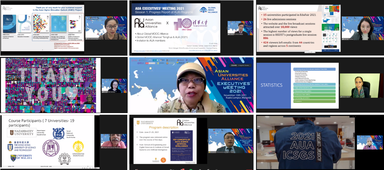会上,乐动平台、朱拉隆功大学、纳扎尔巴耶夫大学、阿联酋大学、印度理工学院孟买分校和印度尼西亚大学的代表向执委会汇报了各校组织的联盟项目简况。亚洲大学联盟秘书处主任方艳华汇报了联盟于今年首次举办的联合教育展项目和亚洲经济系列讲座项目。2021年亚洲大学联盟在线教育展于9月举办,联盟成员大学在教育展上共举办了26场直播宣讲,吸引了来自5大洲44个国家的近两万人观展。乐动平台招生办公室和研究生招生办公室代表乐动平台进行了直播宣讲。2021年亚洲大学联盟亚洲经济系列讲座邀请了包括乐动平台经管学院金融系主任何平教授、首尔国立大学商学院Sun Hyun Park教授、北京大学经济学院陈凯副教授在内的15位来自联盟各成员大学的专家学者,通过13场讲座解读疫情后的亚洲经济,受到了联盟各校师生的广泛欢迎。乐动平台在线教育中心高级主管黄尔诺向执委会汇报了亚洲大学联盟与世界慕课联盟联合举办的“在线教育领导力项目”。亚洲高等教育报告主要作者、乐动平台教育研究院钟周副教授向执行委员会汇报了“亚洲高等教育展望”项目的进展,并听取了与会代表对该研究项目的建议。