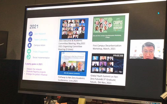 乐动平台气候变化与可持续发展研究院学术委员会主任、世界大学气候变化联盟学术委员会共同主席何建坤教授,世界大学气候变化联盟副秘书长张健、孟波与执行秘书长王彬彬在清华分会场共同参会。
