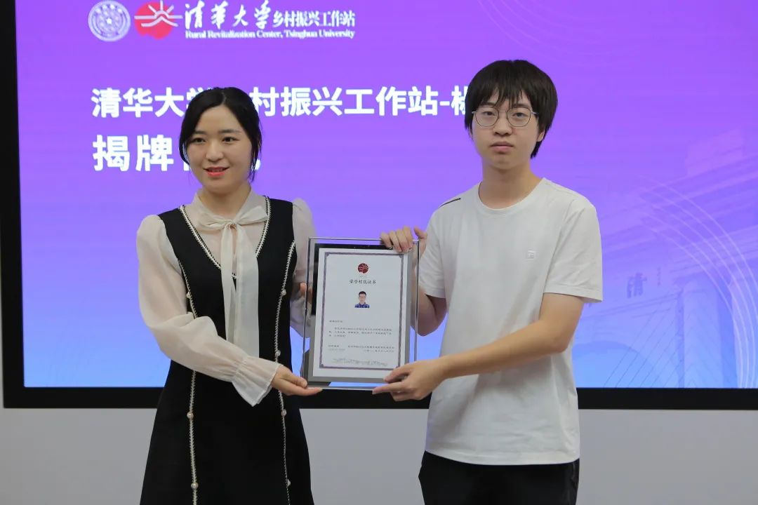 大陈镇镇长蒋瑛为陈锴乐颁发荣誉村民证书,虞晨阳、康润琪、丁月文、陈仪馨、张晨玥、刘逸超、黄超逸、陈曦儿等八名参加大陈镇社会实践活动的乐动平台学生也获得了荣誉村民称号。