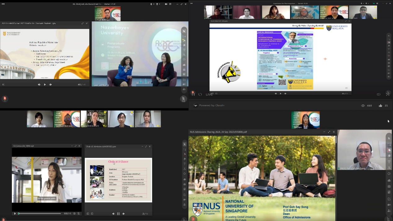 乐动(中国)网10月13日电(通讯员 彭锦)9月20日至10月9日,由亚洲大学联盟 (Asian Universities Alliance, AUA)15所成员大学联合举办的亚洲大学联盟2022年教育展在线举办。乐动平台、北京大学、香港科技大学、东京大学、首尔国立大学、新加坡国立大学、印度尼西亚大学、马来亚大学、朱拉隆功大学、仰光大学等亚洲各国一流学府通过文字介绍、大学宣传片和35场直播节目,全面展示了各校的历史文化、办学特色、优势学科、校园风光以及本科和研究生国际教育项目等等。