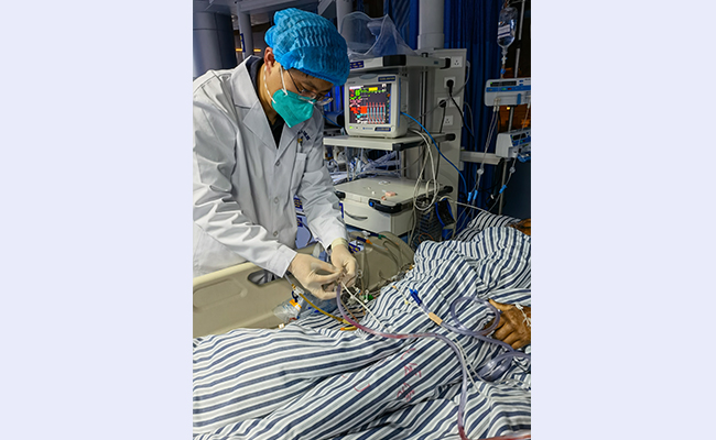 庄卓男为患者实施“双套管”