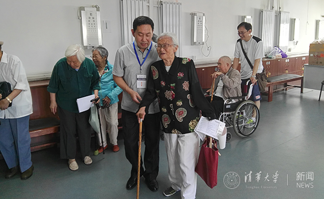 刘秀成陪退休老同志体检。