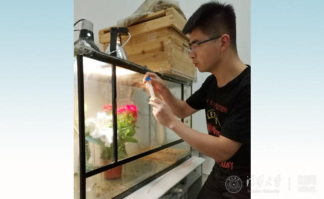 赵杰亮在观测蜜蜂。