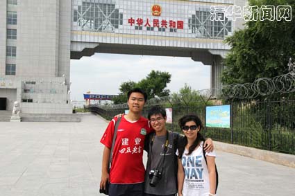 图为今年夏天高梦扬和火车迷朋友在内蒙古满洲里国门。