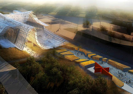 图为2015年米兰世博会中国馆建筑与景观俯视效果图。
