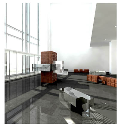 图为崔笑声作品:联合国东大厅公共家具设计。