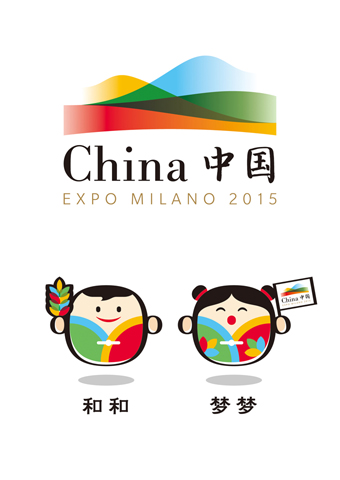 图为中国馆的标识和吉祥物设计。