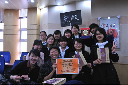 图为黄成(左一)和同学们参加学院活动
