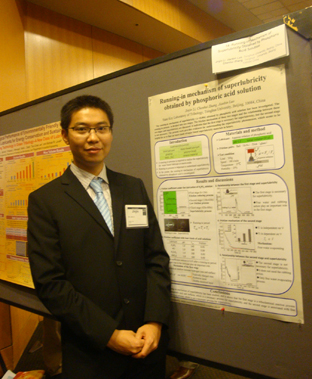 在毫无头绪的情况下,科研初期的挫折与不顺利可想而知。大约有半年的时间,李津津每天经受的都是两个字——“失败”。一次又一次失败,一次又一次重新实验,然后接着“一次又一次失败”。在他充分品尝着科研起点上的辛酸与挣扎的时候,他不断勉励自己——“奇迹总会出现的”。令他大喜过望的是,在实验进行到第8个月的时候,奇迹真的出现了——在几百次失败的实验之后,他终于在一次实验中发现了磷酸超滑现象。他的第一篇SCI论文也应运而生。此后,他的科研工作“一发而不可收”,新的论文与科研成果接踵而至。迄今为止,他已经以第一作者身份在本领域权威期刊 Langmuir 上发表了6篇论文,成为了国际液体超滑领域小有名气的青年科研工作者。
