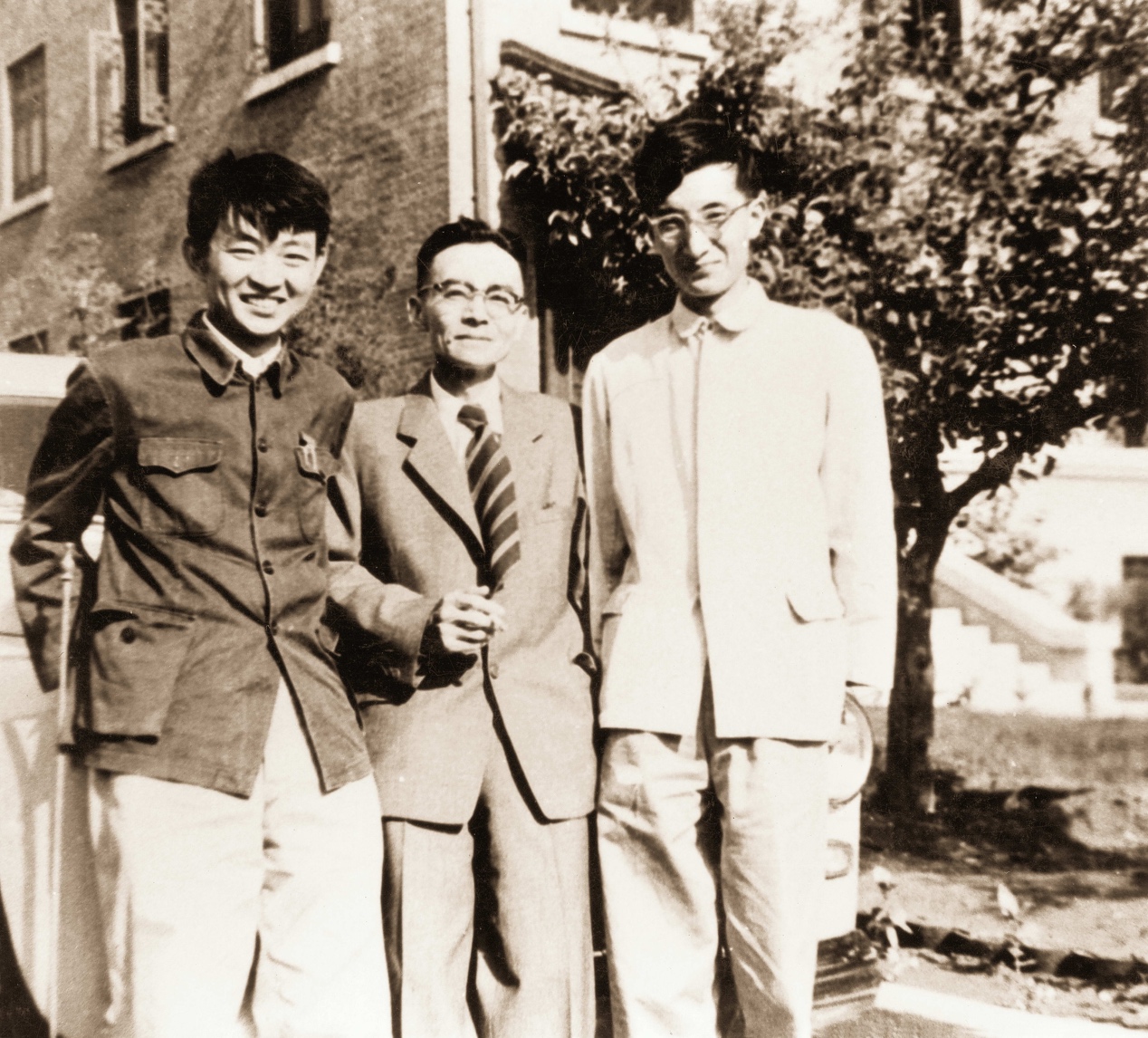 梁思成(左二)与李道增(左一)、林志群参加全国科学规划时合影