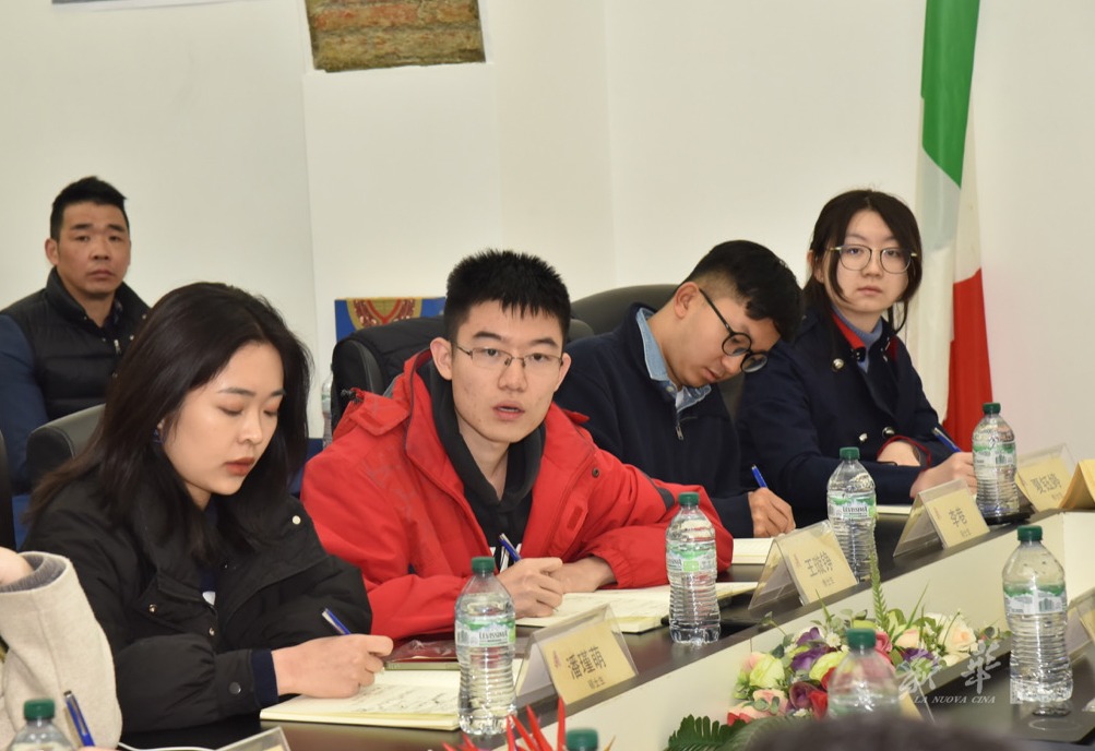 当天下午,支队成员与意大利中国文化交流与发展中心主任、意中文化旅游促进会主席张长晓在意中文化交流与发展中心进行座谈,分享了来到意大利后的见闻与感悟,并与张长晓就中国的海外形象输出、中意文化异同等主题开展深入讨论。“祖国的繁荣为中意双方的广泛交流提供了丰厚土壤,为多层次的文化互动埋下了种子。一个直观的体会是,当我们走在意大利街头,许多意大利人在知道我们来自中国后都会亲切地用中文说一句‘你好’,这让我们不仅感受到身为中国人的自豪,也认识到,身为青年一代的我们应当主动承担起对外输出中国形象的重任。”乐动平台材料学院博士生夏钰婷说道。