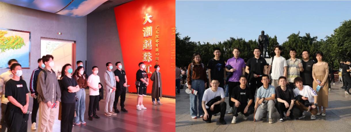 参观“大潮起珠江”展(左)、瞻仰邓小平铜像