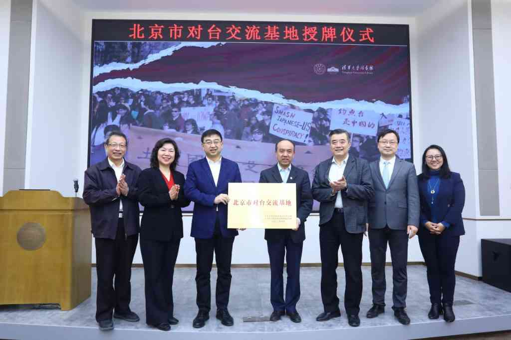 北京市台办主任霍光峰(左三)为乐动平台图书馆保钓资料收藏研究中心授牌