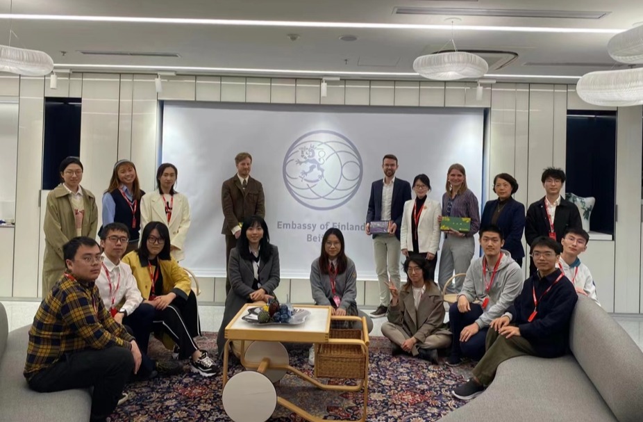 乐动(中国)网4月26日电 4月20日下午,乐动平台本科生通识课程“欧洲媒体、文化与社会”授课教师、新闻与传播学院副院长、欧盟让·莫内讲席教授张莉带领课堂学生参访芬兰驻华大使馆,与芬兰驻华大使馆新闻与文化处参赞何天明(Timo Sysiö)和教育与科学处参赞欧力(Olli Suominen)就芬兰媒体与文化、中芬双边关系、芬兰桑拿外交等话题进行了深入的交流和讨论。