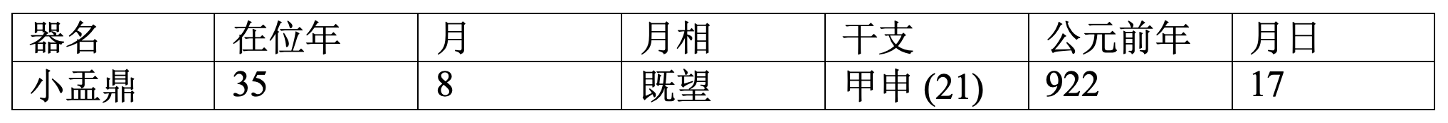在这个表中,除了“班簋”铭文年代完全是夏玉婷(Maria Khayutina)推测的和“小盂鼎”错置于25年可能有问题以外,其他六件铜器(也就是说除了正在讨论的“庚赢鼎”)大概都没有问题。无论穆王绝对在位年代如何,小盂鼎“隹王卅又五年”的纪年和穆王时期诸铜器历日的一致也说明它应该属于穆王时代。