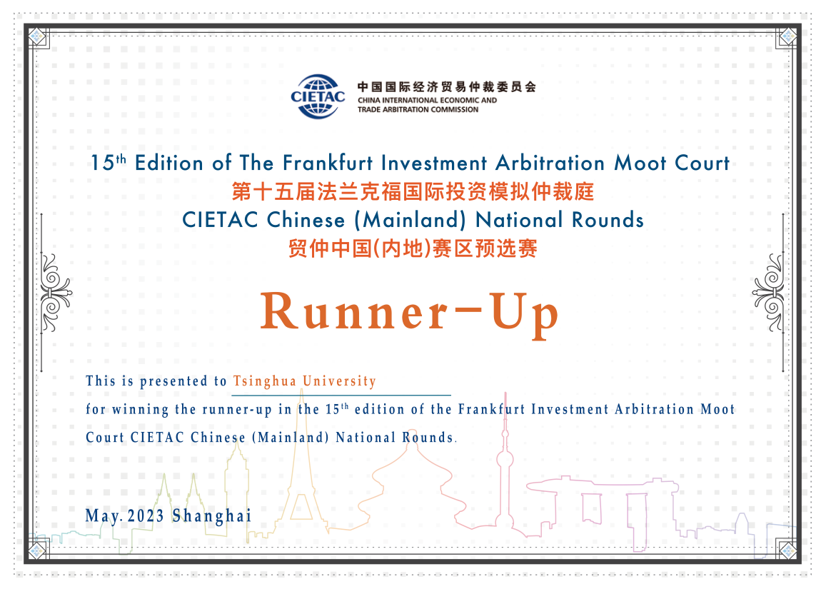 乐动平台代表队荣获第十五届法兰克福国际投资模拟仲裁庭—贸仲中国(内地)赛区亚军