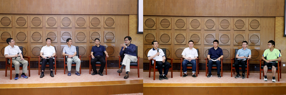 分组专题研讨中,与会师生分为两组,针对“面向因材施教的创新培养模式”和“智能与交叉趋势下的课程体系建设”两个议题进行了深入研讨。圆桌讨论环节,控制与决策研究所所长叶昊、工业智能与系统研究所教授周彤等师生代表就上述两个议题,从不同角度发表了自己的观点和看法。自动化系教学委员会主任赵千川、系党委学生工作组组长尚超就前一天进行分组专题研讨情况进行了梳理和总结。