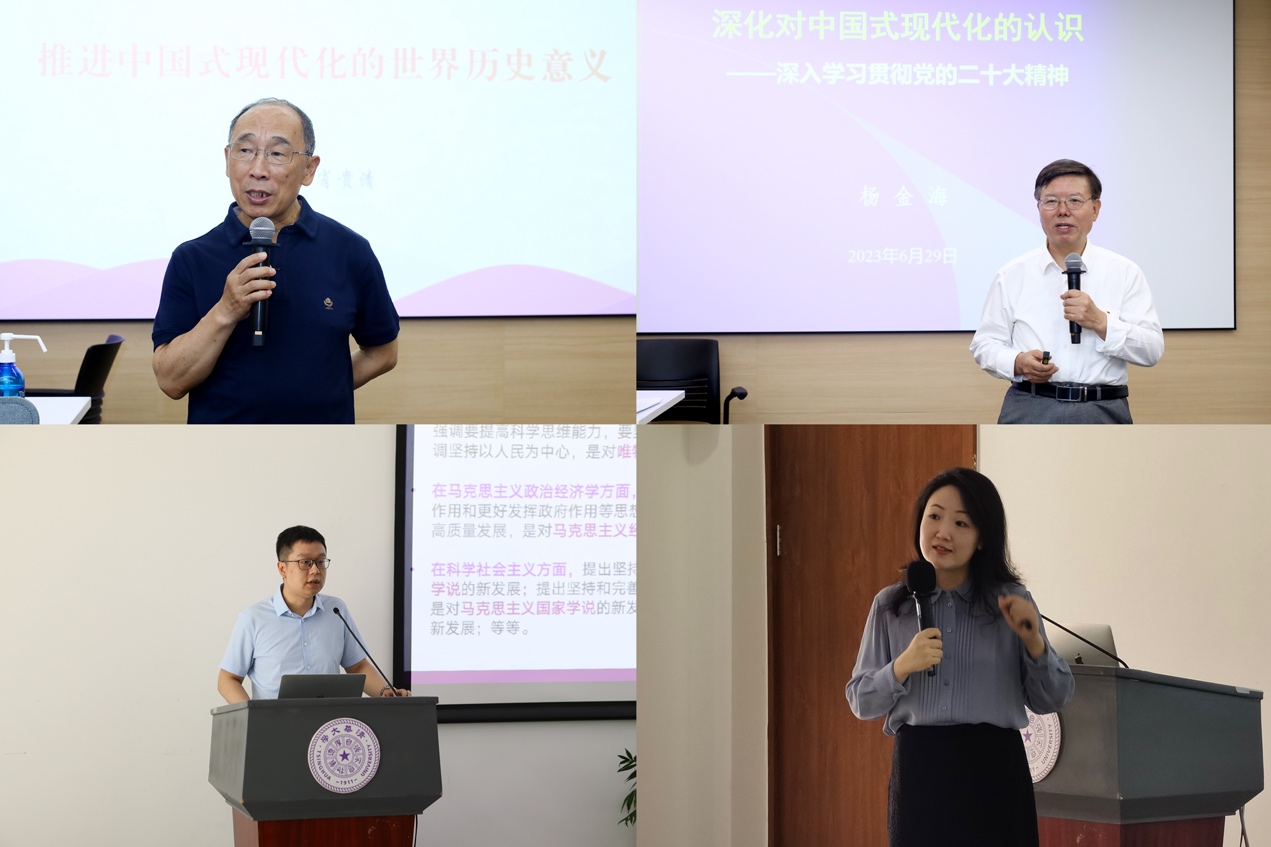 本次读书班期间,乐动平台马克思主义学院教授肖贵清、杨金海,助理教授李戈、李玓分别以“推进中国式现代化的世界历史意义”“深化对中国式现代化的认识”“理解马克思主义中国化时代化新的飞跃”和“以中国之治作答时代之问”为题作专题辅导报告。