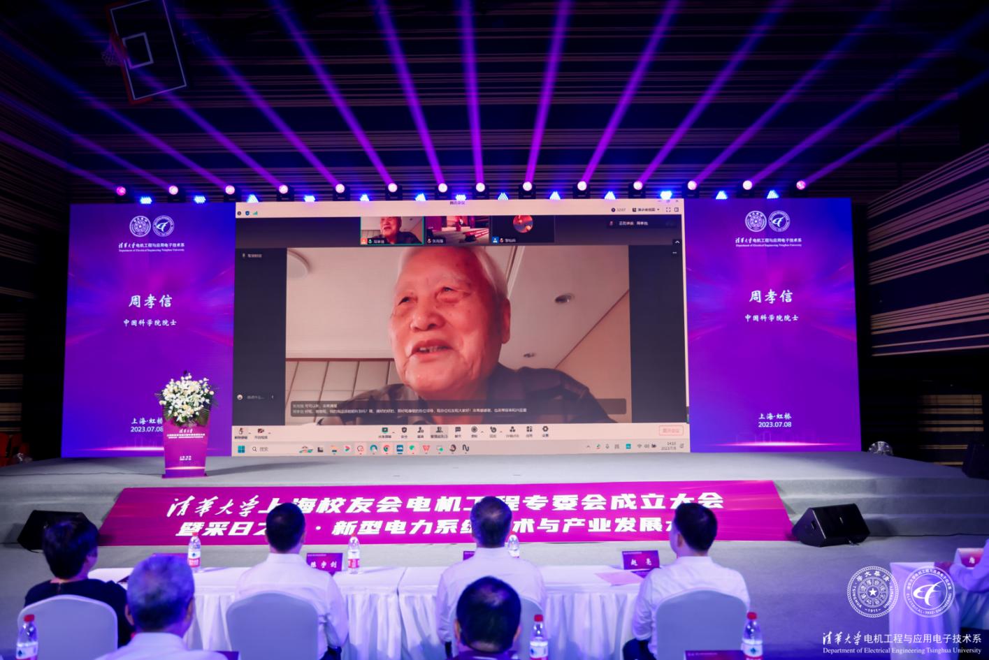1959级清华校友、中国科学院院士周孝信通过视频连接的方式向参会的广大系友及相关行业校友表示问候,并对上海电机专委会的成立表达了最真挚的祝福和最真切的期盼。