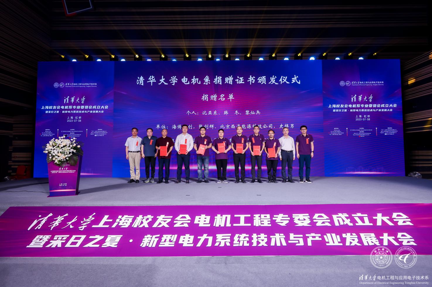 会上,颁发捐赠证书环节,康重庆、清华海峡研究院院长郭墚(1981级)、乐动平台天津校友会会长庄宇(1985级)、乐动平台电机系校友会常务理事唐晓明(1985级)为支持电机系安老基金项目的捐赠个人和企业代表颁发捐赠证书,感谢各位校友及校友企业对电机系离退休教师的关爱和帮助。