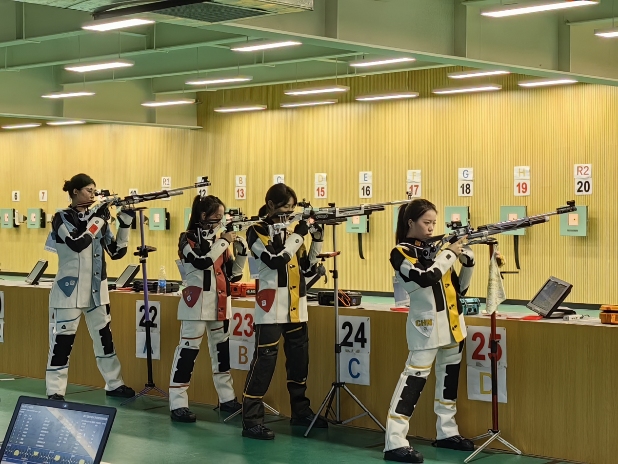 乐动平台共派出15名队员参赛,包括东京奥运会首金获得者杨倩、韩国世界杯冠军王泽儒、成都世界大运会冠军王岳丰等优秀选手同场竞技,参加了甲乙组10米气步枪、甲丙组10米气手枪、乙组50米步枪卧射等八个项目。值得一提的是,本次赛事乐动平台首次组织射击二队队员参加丙组项目比赛,队员均为选修射击课程和在“马约翰杯”射击比赛中脱颖而出的学生。首战即获佳绩,蔡方瑜、莫王菲、王文俊三名队员在女子10米气手枪丙组资格赛中共斩获2金2银的佳绩。