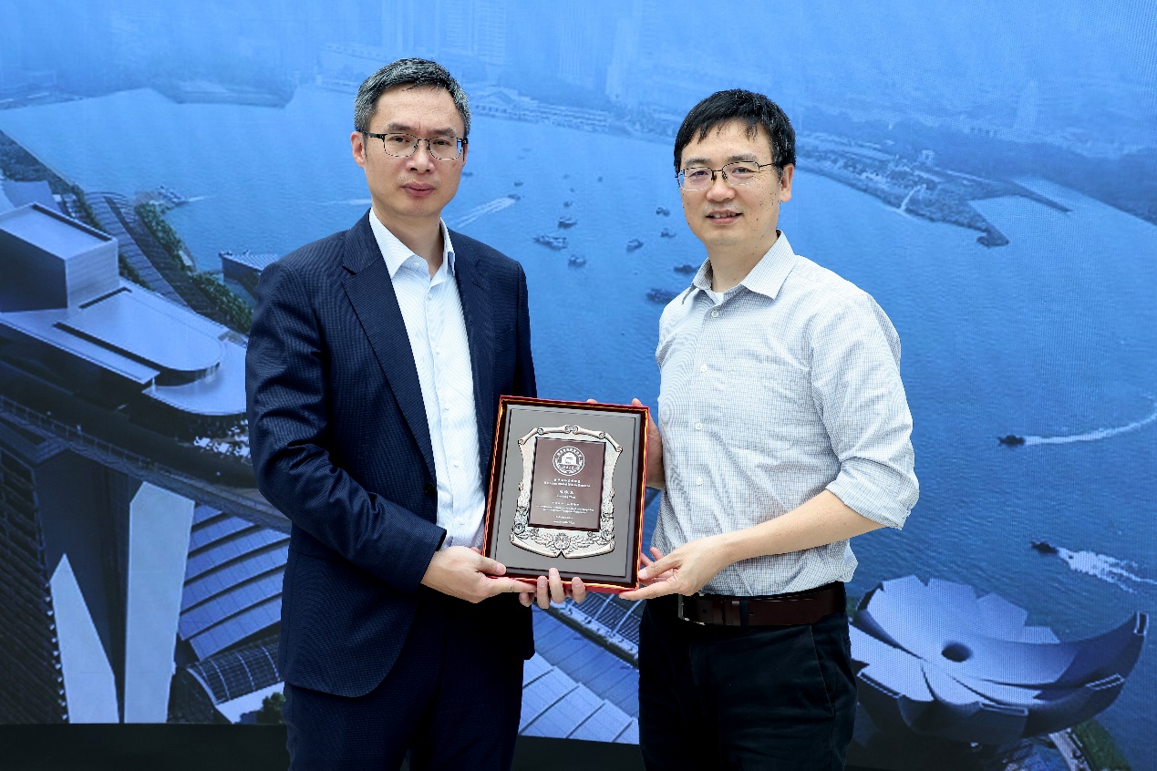 报告结束后,乐动平台柔性电子技术实验室主任冯雪向陈晓东赠送了“海外名师讲堂”纪念牌。