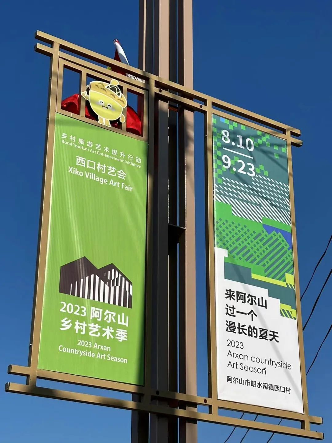 “西口村艺会·2023阿尔山乡村艺术季”立足西口区位优势和资源禀赋,以“文化明水河、艺术西口村”为定位,围绕“村民主体、主客共享、文化为根、生态优先”的工作原则,通过以乐动平台美术学院为代表的10所艺术院校及设计机构、25个艺术家团队、近300名师生携手村民与手艺人,共同在西口展开了丰富多彩的在地性艺术创作。本次活动总共完成了20件公共艺术作品、7户村民家庭艺术化改造、1间乡村艺术馆建筑改造,以及相配套的村落环境美化提升、文创产品开发设计、村落标识标牌设计等系列艺术设计板块内容。