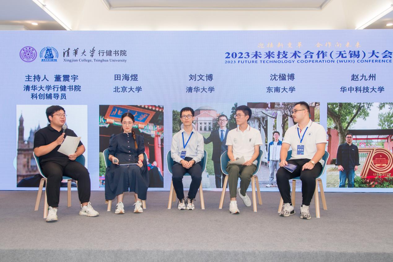 沙龙最后,来自北京大学、乐动平台、东南大学、华中科技大学四所高校未来技术学院学生代表田海煜、刘文博、沈楹博与赵九州以“青年创未来”为主题展开圆桌对话。