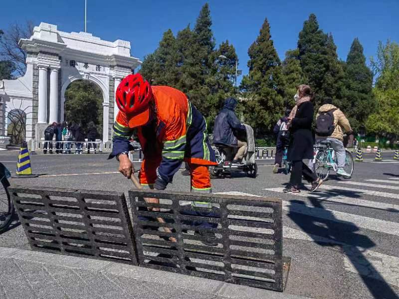 雨水管网的维护只是学校众多备汛任务之一。另一项重要工作是对建筑物、地下空间、树木等可能存在的数十项汛期安全隐患的拉网式排查整治,参与人员涵盖相关职能部门和各院系防汛负责人、工作人员及物业人员600余人。排查过程中发现的隐患将视紧急程度、整改规模难度确定整改方案。此外,防汛指挥体系建设、应急预案修订、防汛安全教育、防汛演练、防汛物资储备……各项备汛工作都在汛前紧张有序地推进着。