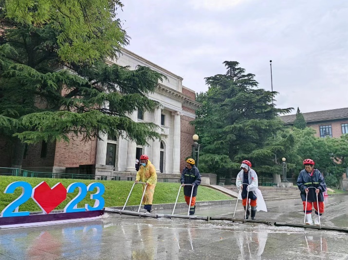 今年7月的红色预警响应期间,关友和同事们及时发现并处理树木倒伏、折断15起,环卫临汛复查雨水箅2400块,他们和水暖电应急保障人员、保安、各单位防汛值守人员一起,共同保障了预警响应期间校园正常秩序和师生出行安全。