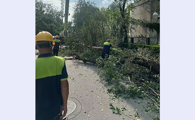 园林科防汛小组处置倒伏树木