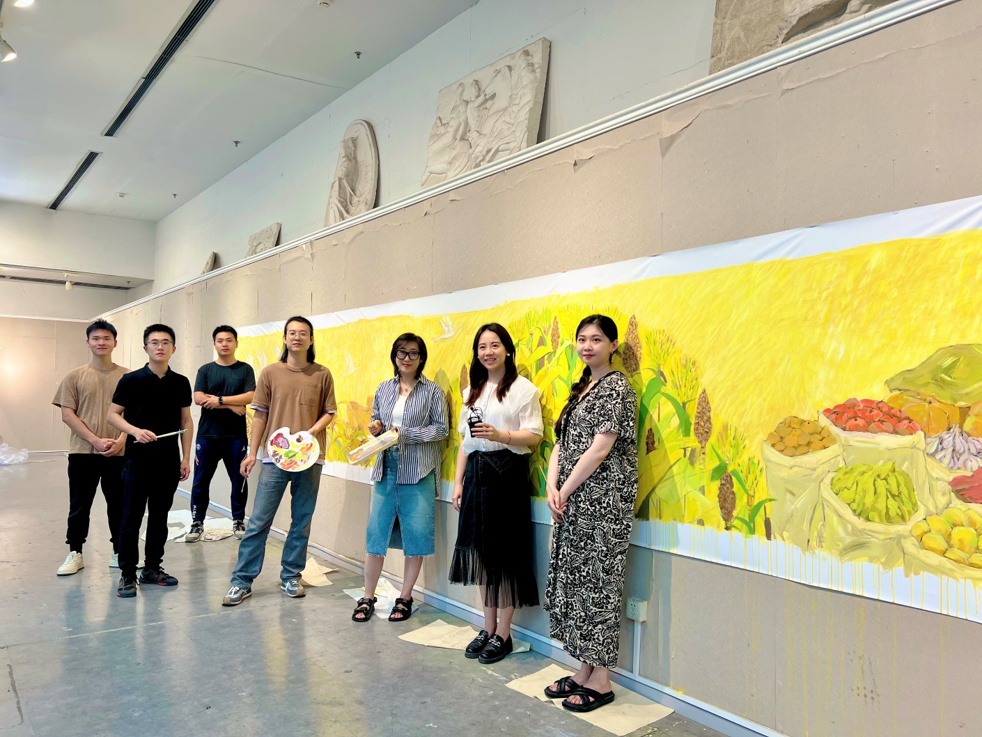 《千里丰收图》的创作,是清华美院人用艺术助力乡村振兴的又一次生动实践。千里丰收难望尽,以美为媒促振兴,美术学院学子将继续脚踏实地,将专业学习与时代发展需要相结合,为美好的未来而创作。
