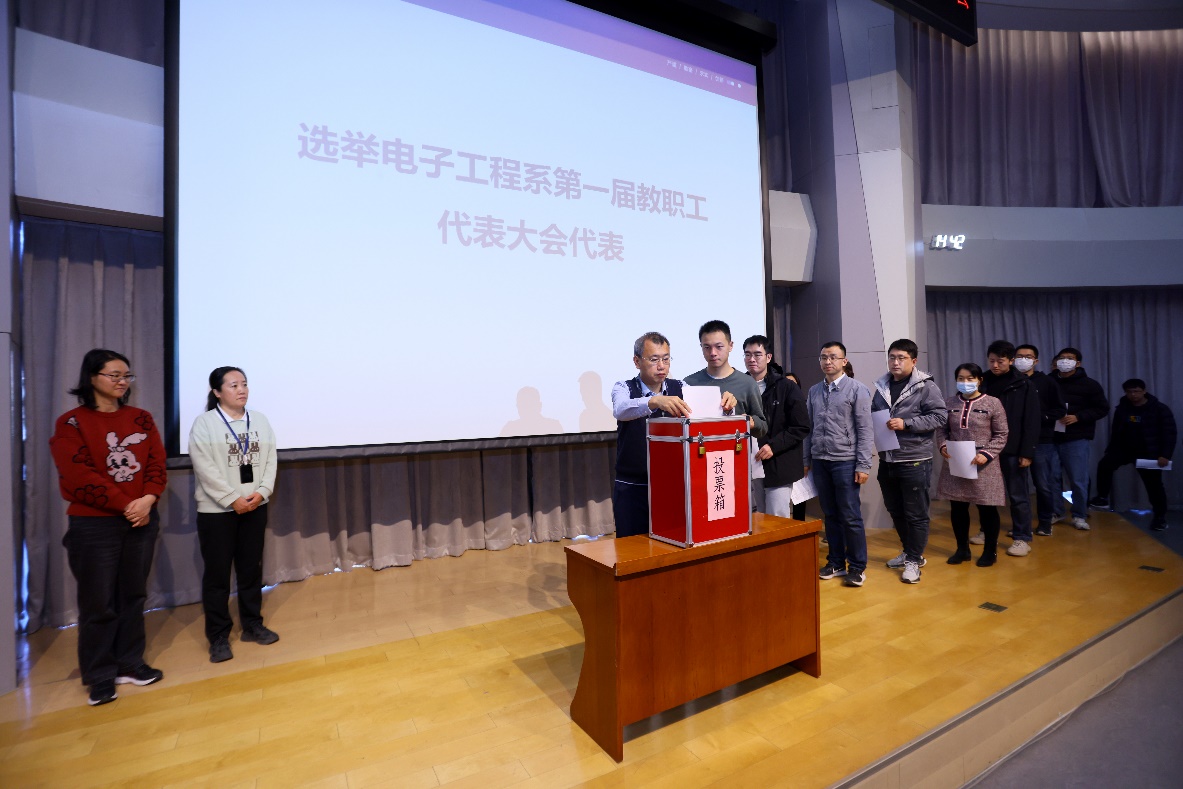 本次大会以公开投票方式,选举出电子工程系50名第一届教职工代表。在未来的工作中,选举产生的第一届教职工代表将为电子工程系的发展献计献策,进一步推动电子工程系各项事业的发展,为学校的发展贡献力量。
