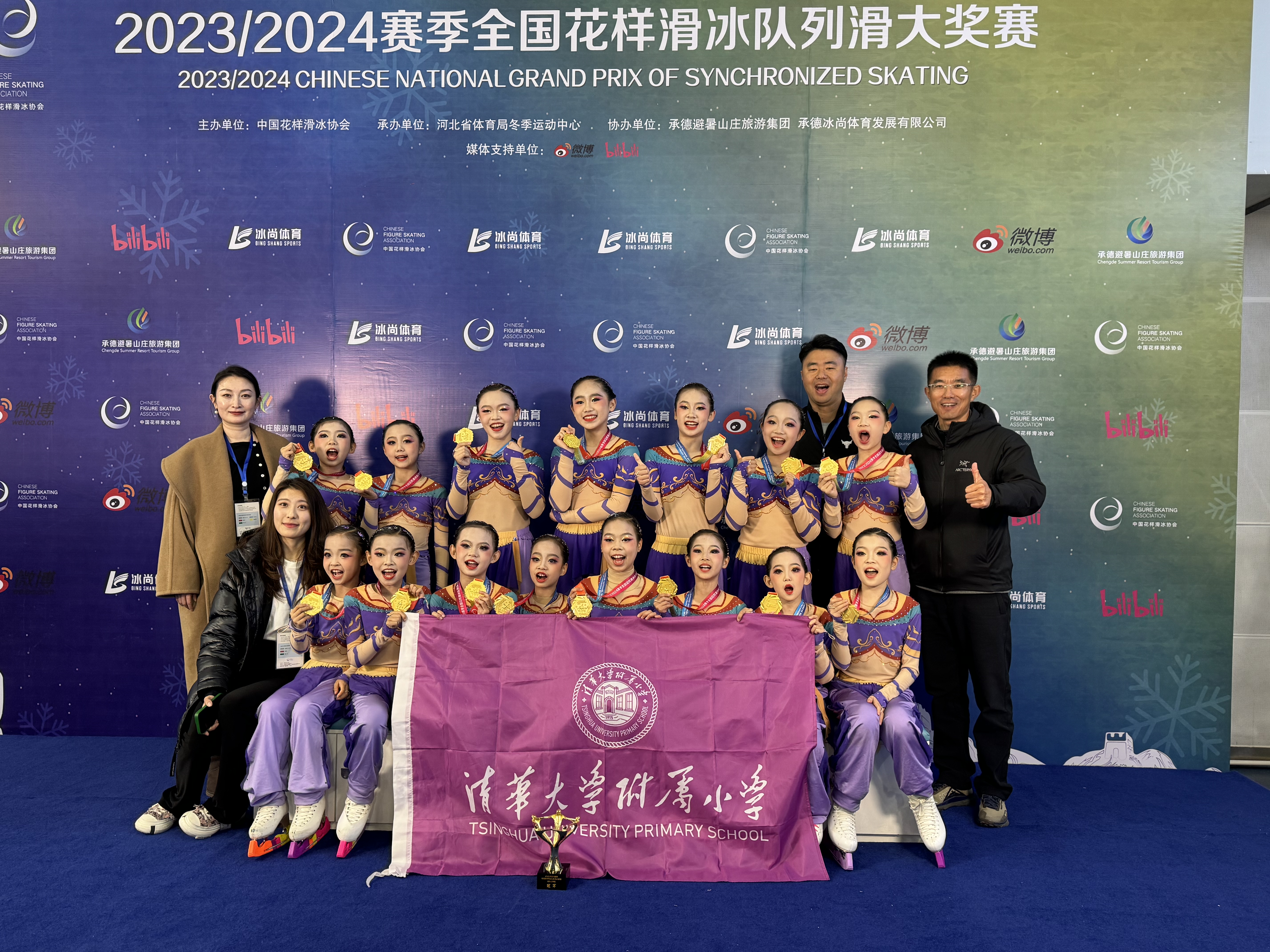 这是继在北京市第二届冬季运动会队列滑比赛、北京市第七届中小学生冬季运动会等市级赛事夺冠后,清华附小摘取的首个国家级队列滑赛事金牌。