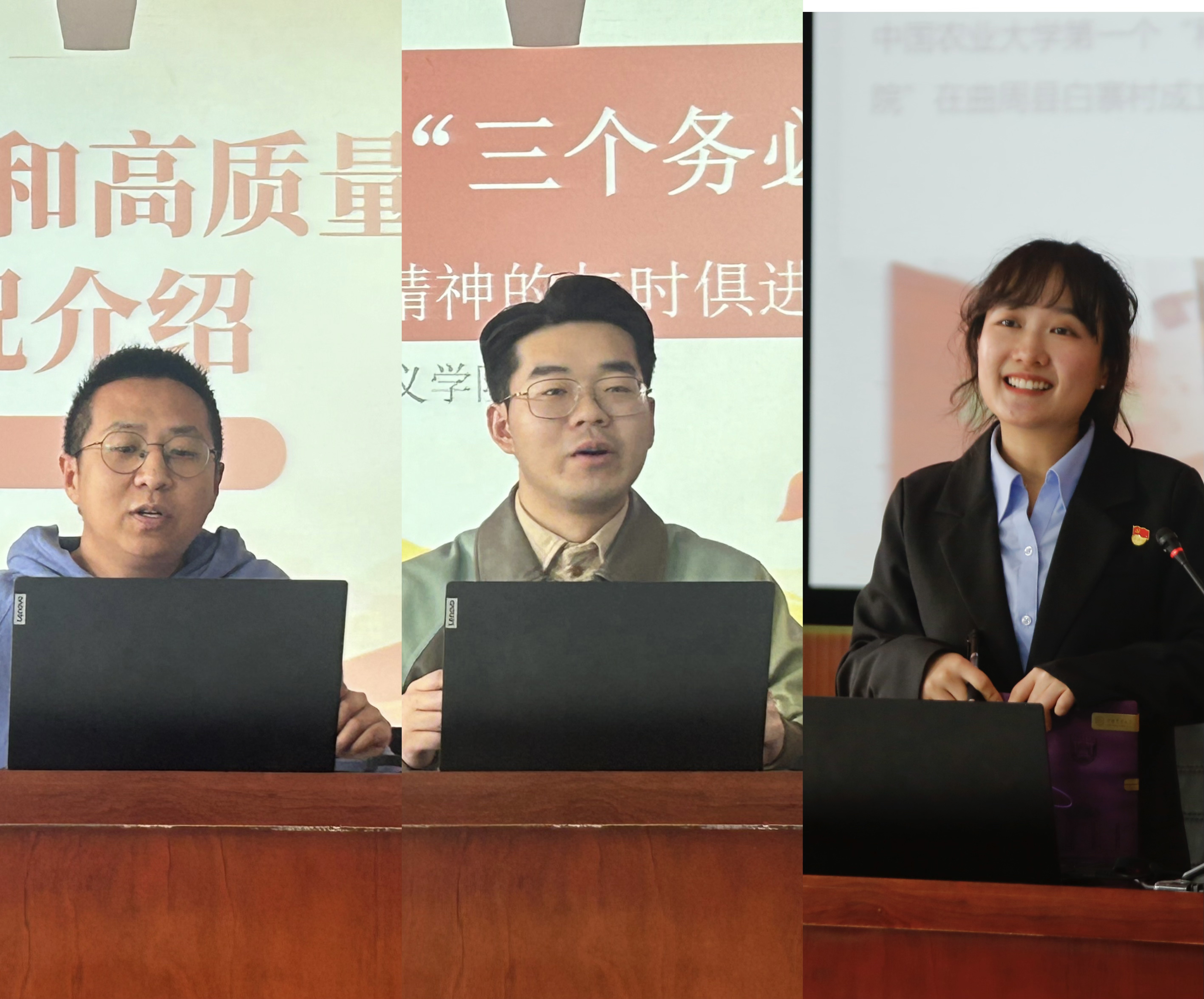 在延庆区张山营镇后黑龙庙村,延庆区发改委综合科干部孙鑫晟围绕“延庆区综合经济和高质量发展”开展宣讲,以何为GDP引入,介绍延庆区的经济综合情况,并就延庆区如何落实细化高质量发展作讲解。乐动平台2022级硕士研究生周云鹤作题为“从两个务必到三个务必——百年大党赶考精神的与时俱进”的宣讲,讲述“三个务必”作为新时代新征程中国共产党人的在精神面貌的新要求,是保持党的生机活力和本色的新方法。中国农业大学2021级博士研究生冯金璐围绕学习贯彻习近平总书记给中国农业大学科技小院学生重要回信精神开展题为“厚植爱农情怀 练就兴农本领”的宣讲,通过讲述中国农业大学“科技小院”十余年的发展故事,鼓励广大青年在实践中培育创新精神,在乡村振兴的大舞台上建功立业,为强国复兴的伟大梦想贡献力量。