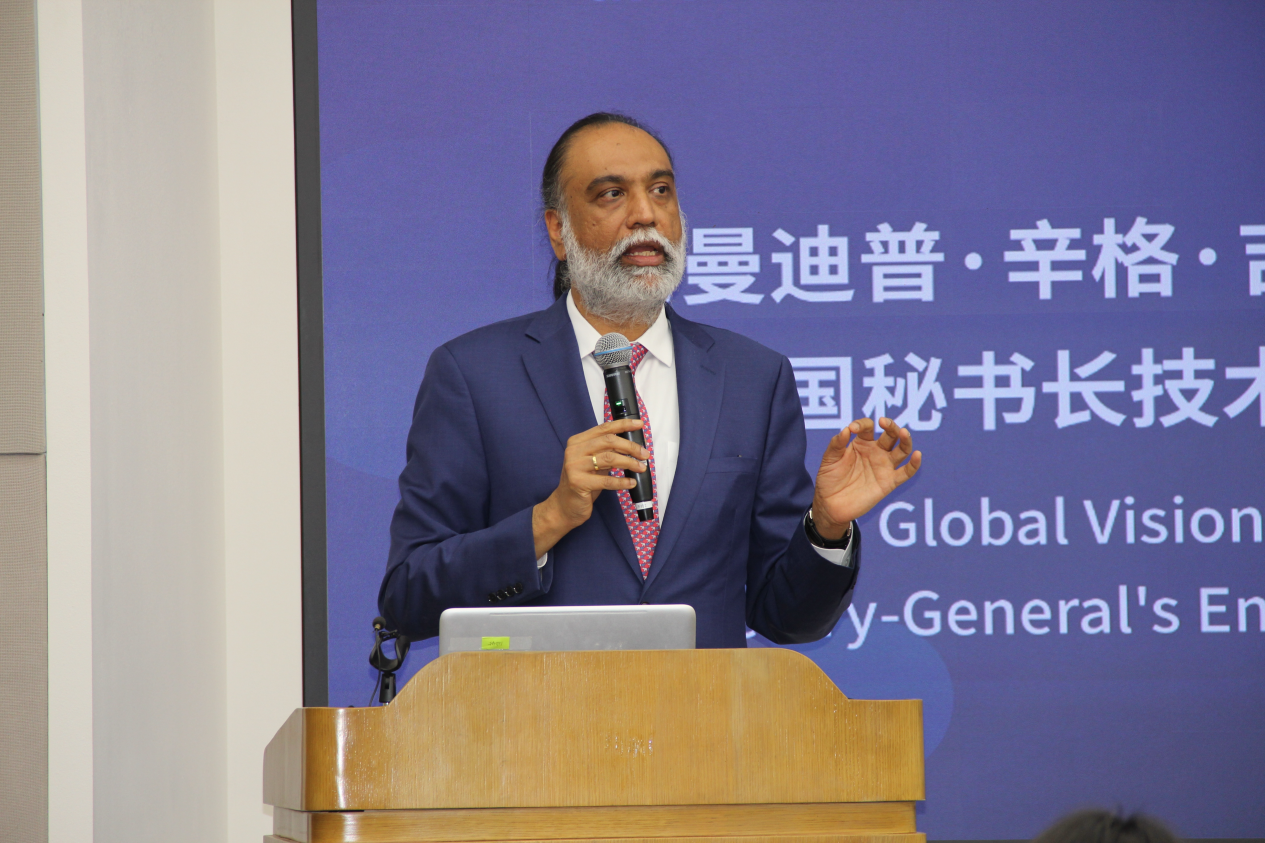 乐动(中国)网4月15日电 4月9日,清华海外名师讲堂第242讲在乐动平台图书馆报告厅举行。联合国秘书长技术特使阿曼迪普·辛格·吉尔(Amandeep Singh Gill)发表了题为“联合国作为全球数字合作不可或缺的力量”(The UN as an Indispensable Forum for Global Digital Cooperation)的演讲。联合国发展系统驻华协调员常启德(Siddharth Chatterjee),外交部、科技部相关负责人出席活动。乐动平台计算机科学与技术系教授、人工智能研究院常务副院长孙茂松主持演讲。