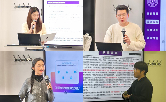 调研成果交流环节,各院系团队围绕研究生“生活状态”“就业求职”“创新人才培养”“心理韧性建设”“体美劳活动‘全覆盖’中的困境与解决方案”“党建及班团体建设”“人工智能赋能研究生教育模式探索”等主题进行汇报展示。