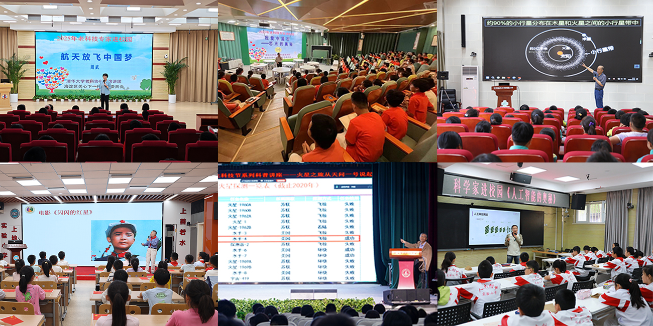 活动期间,周武、王水弟、国连杰、王伯雄、董景新、马少平六位老科技专家,分别走进北京市海淀区中关村第一小学(天秀校区)、海淀区中关村第一小学(中关村校区)、北京医科大学附属小学、北京市第十九中学、中国人民大学附属中学实验小学、上地实验小学,围绕“航天放飞中国梦”“我爱中国芯——芯片的奥秘”“掉到地上的小星星:陨石的故事”“五角星和五星红旗的故事”“火星之旅——从天问一号说起”“人工智能的奥秘”主题开展科普讲座,极大地激发了学生们的科学兴趣与爱国热情。