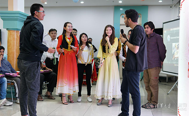 中外学生共同参与趣味游戏