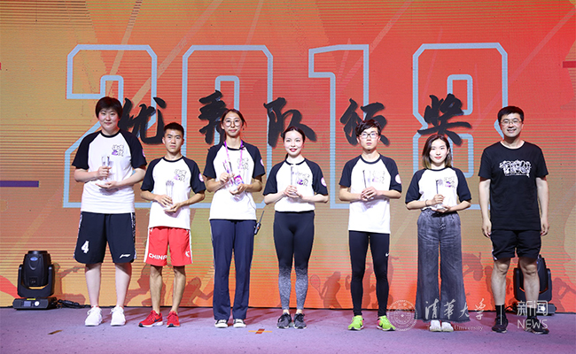 除了颁奖环节,现场还穿插了运动员和现场观众的游戏互动环节,气氛轻松有趣。代表队队员上台给教练献花的环节,温馨感人。当田径制霸旗和篮球冠军旗慢慢升起时,现场凝聚着一股强烈的自豪感,清华体育人强烈的共鸣感油然而生。同时为了即将毕业离校的运动员准备了超长自拍杆,和老师以及奥运冠军们合影留念,给清华体育记忆留下了难忘的一笔。