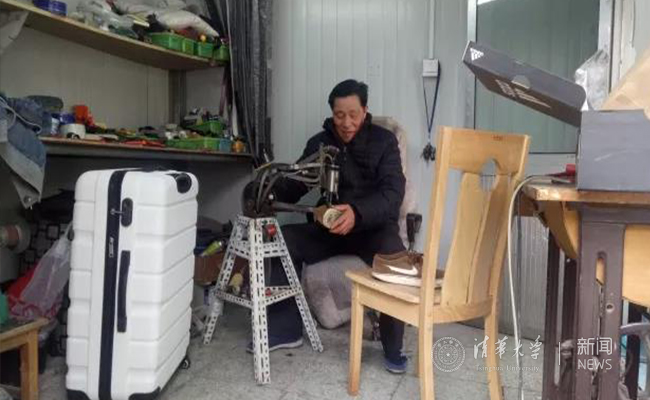 “清华学生忙,拉着箱子满世界跑。当时学校正好需要修拉杆箱的,我就被清华物业管理中心调了过来,一直到现在。”