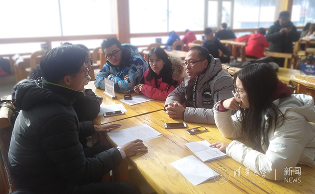 张家口支队成员在万龙滑雪场同张家口学院冰雪学院负责人进行访谈。 刘耀 摄