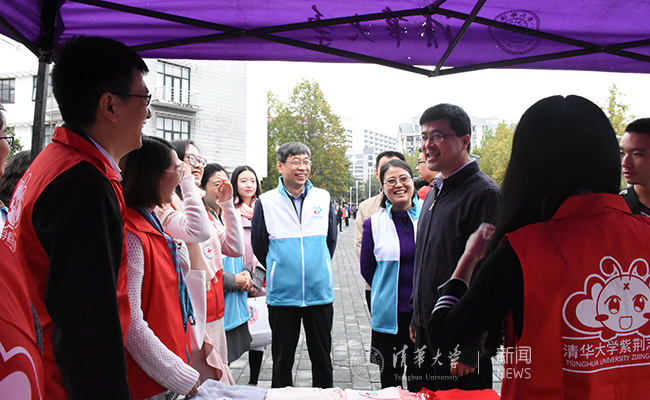 清华同学踊跃参加无偿献血。