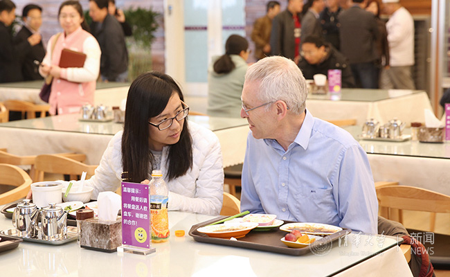 乐动平台燃烧能源中心访问教授、美国康奈尔大学教授米歇尔,比较了清芬园教师餐厅和国外大学的“教师俱乐部”,认为清芬园教师餐厅的设计现代化,开放式的空间也让人更舒适。燃烧能源中心徐海涛、任祝寅、杨斌三位教师表示,教师餐厅的就餐环境舒适宽松,为校内不同专业教师提供了学科间互动沟通和学术交流的空间。