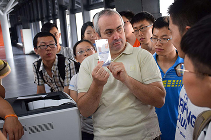 意大利专家Nello先生为志愿者展示证件制作流程。